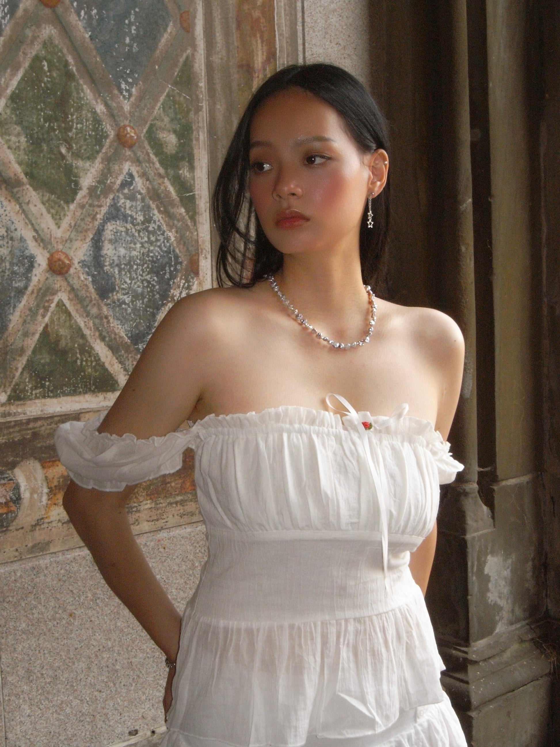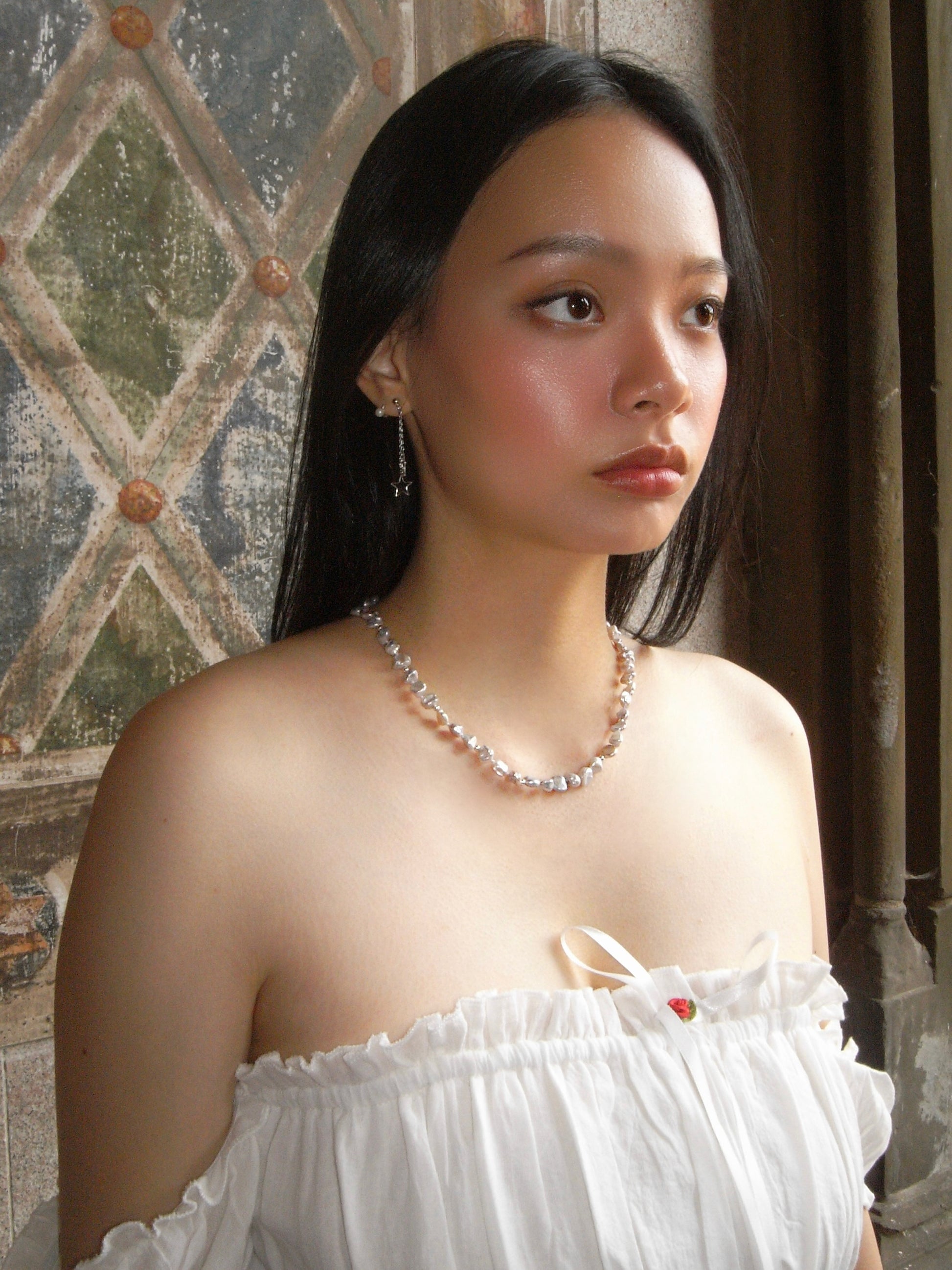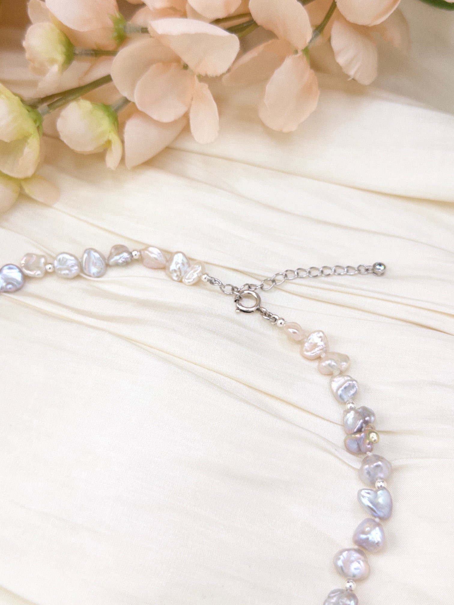 Multicolor Keshi pearl necklace with 48 pearls. 3.70–9.00 mm pearls with sterling silver chain and clasp.