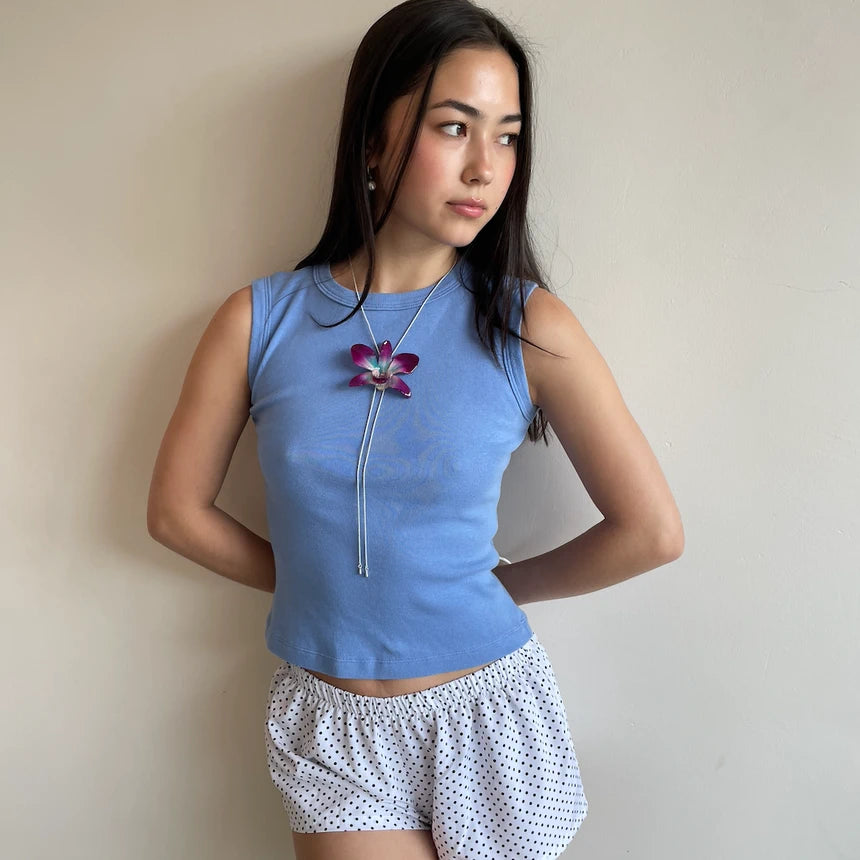 Real purple Orchid Lariat slider-style adjustable necklace in stainless silver (dipped).