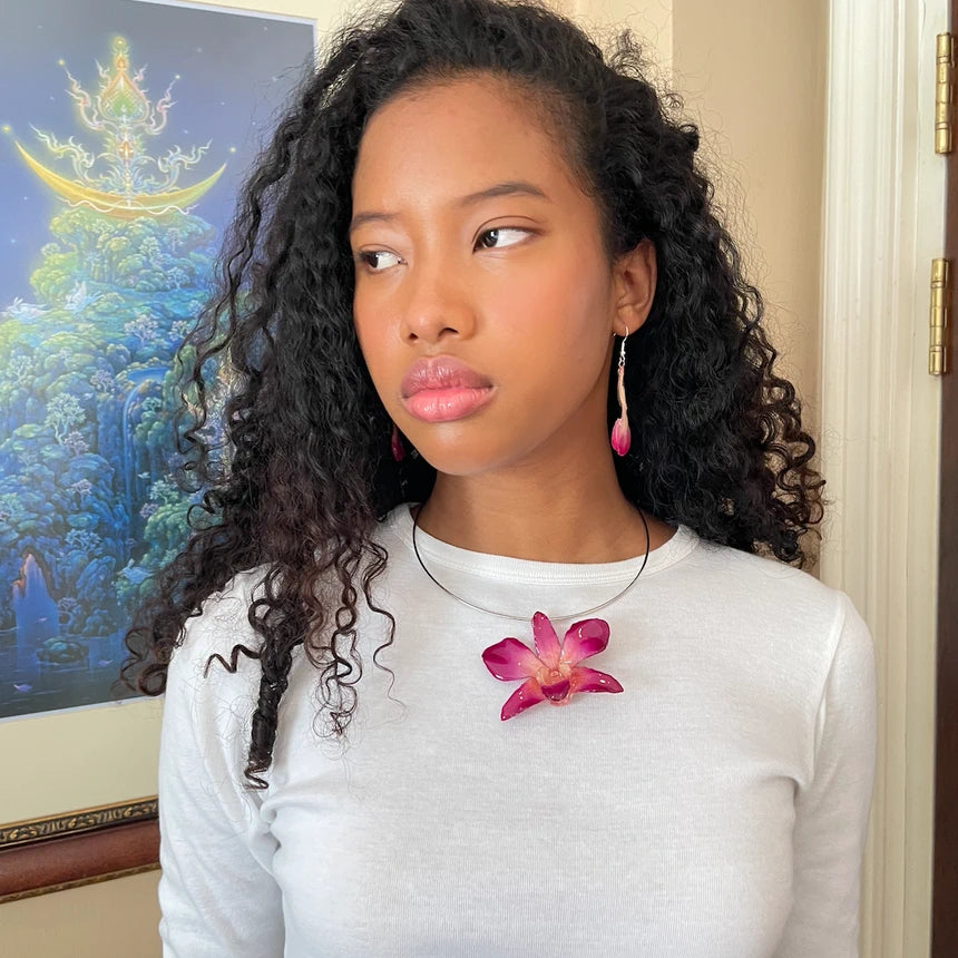 - Removable real resin-coated Red & Pink Dendrobium orchid charm