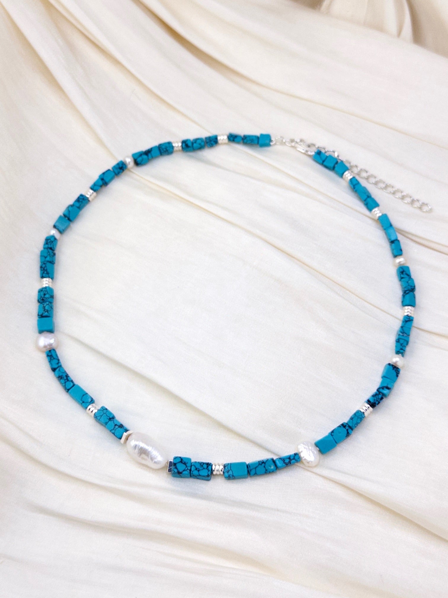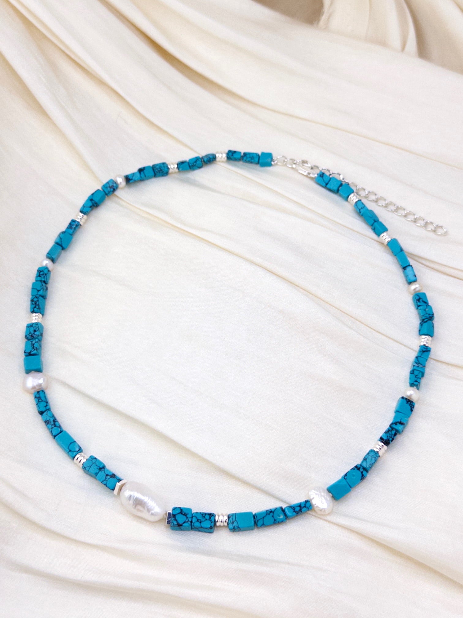 - Turquoise necklace with 6.50–7.70 mm freshwater pearls
